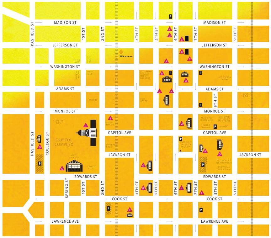 Getting around For those traveling by motor vehicle, the map includes locations of parking garages, parking lots and the directions of one way streets to help you get around downtown. For those looking for other modes of transportation, Springfield Mass Transit District offers a “Historic Sites Route.” Service begins at 8:15 a.m. Monday through Saturday (no service on holidays) and you can ride all day for only $3. Buses run every half hour. Visit their website at www.smtd.org or phone, 217-522-5531.