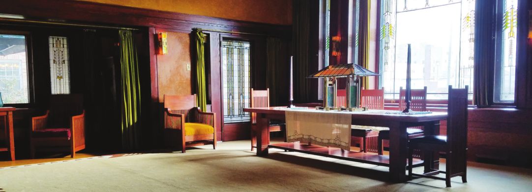 The house contains the largest collection of Wright furniture and art-glass windows in the world. The house also features a panoramic mural, created by internationally renowned artist George Niedecken, who painted many murals for Wright. The Sumac Gift Shop offers many Wright-related items.