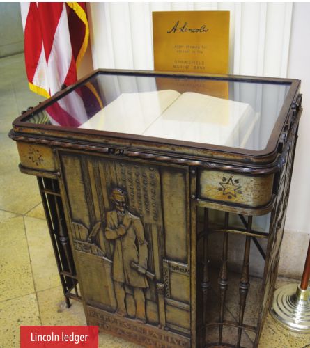 The Lincoln ledger is in the lobby of Chase Bank, 1 East Old State Capitol Plaza, at the southeast corner of Sixth and Washington streets. 217-527-3860. Open 8:30 a.m.-5:30 p.m. Monday through Friday. Free admission.
