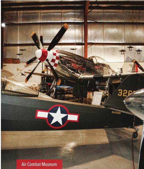 The Air Combat Museum showcases the role of military aviation with an array of aviation memorabilia, including the gun sight from a Messerschmitt 109 and historical aircraft, including a P-51 Mustang, a Vought F4U-5 Corsair and a World War II vintage Ryan PT-22 Recruit. A rare 1928 Stearman C-3B joined the growing collection in 2011. An antique Fleet Model 9 biplane is being restored on the premises.